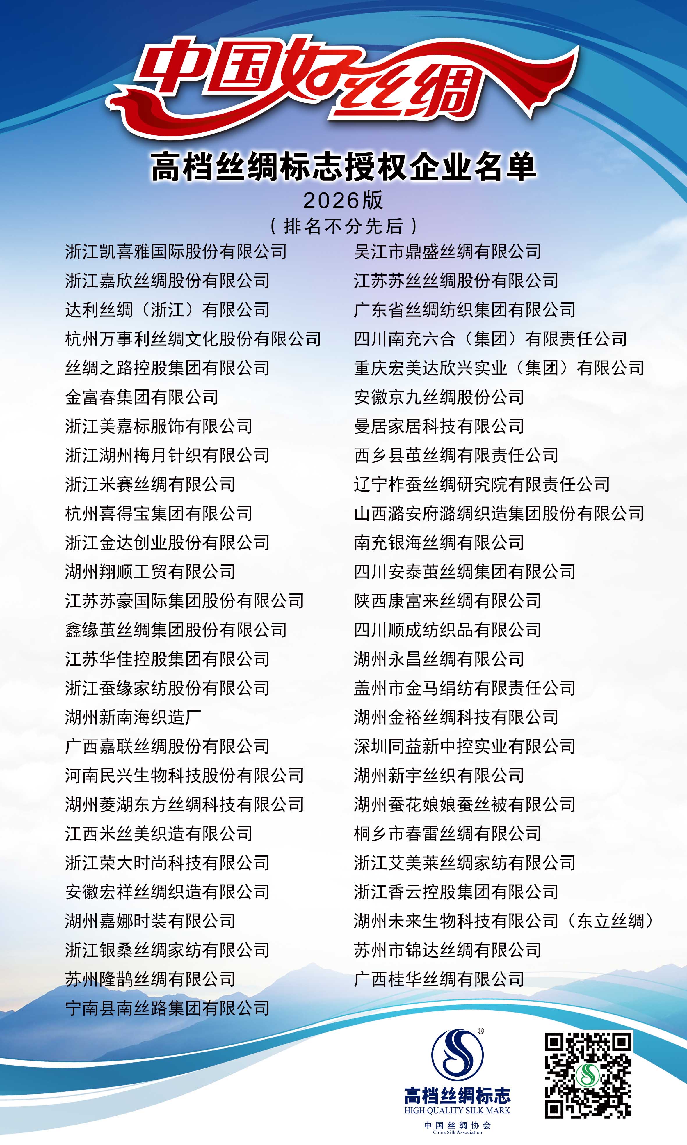 竭诚欢迎国内外有识之士选购挂有“高档丝绸标志”标签的丝绸产品!