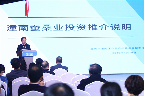 由重庆市商务委员会主办、重庆市茧丝绸行业协会承办的“产业新时代 重庆新作为”——重庆市茧丝绸产业投资合作推介会也在现场同期举办。会上,重庆市商务委员会宋刚副主任着介绍了重庆区域优势、产业优势、政策优势,向广大精英发出邀请,希望来渝创新创业,共谱丝绸发展新篇章!中国丝绸协会副会长、重庆市茧丝绸行业协会会长、重庆宏美达兴欣实业(集团)公司董事长王晓辉介绍了近年重庆市茧丝绸产业概况,以及为招商引资工作和来渝投资的的企业提供政策咨询、点对点对接等相关服务内容。