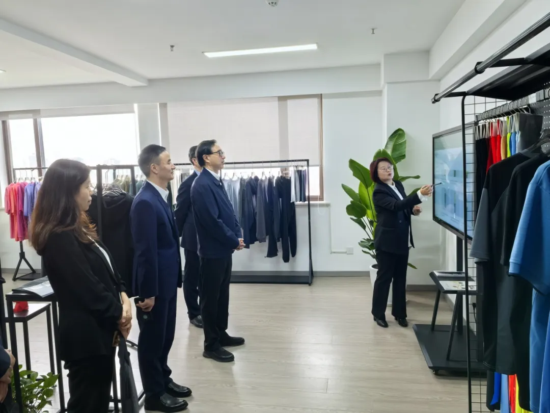 周勇首先参观了位于省纺织工业协会的省纺织研究所南京研创中心,听取了省纺织研究所在高端服装设计、纺织面料研发、海外市场开拓、跨境电商发展及协会内部协同等方面情况,勉励团队不断强化科技创新和设计研发,持续发挥协会功能作用,深化成员企业间的协同协作,聚力推动产研融合,促进提升江苏省高端纺织先进制造业集群发展水平。
