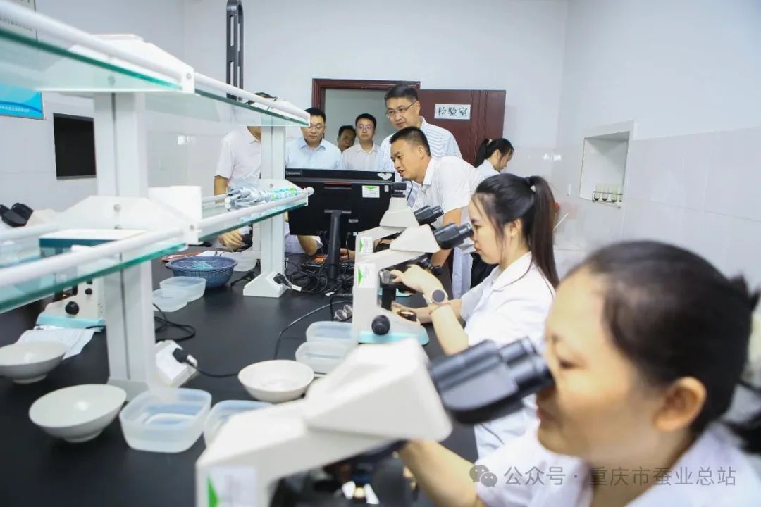 章勇武主任一行到站后,首先听取李海波站长介绍全市蚕桑丝绸产业发展情况,了解蚕桑丝绸产业在推进全市乡村振兴中取得的显著成效。随后,他来到市蚕种质量检验中心,了解蚕种质量检验检疫工作流程以及重庆市在保障蚕种品质、维护蚕农权益方面的具体举措。章勇武主任叮嘱到“蚕种检验关系蚕农收益,一定要严谨务实细致”,同时还叮嘱大家做好防暑降温,确保身体健康。