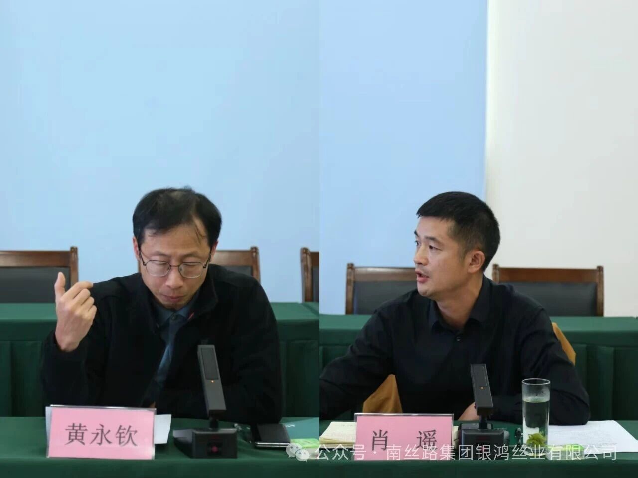11月11日,广州检验检测认证集团有限公司(以下简称“广检集团”)与北京金谷远见科技集团有限公司(以下简称“北京金谷远见”)考察团到四川省宁南县,深入调研当地蚕桑全产业链发展情况,并就深化战略合作、推动产业升级展开交流座谈会。南丝路集团、金桑庄园、银鸿、谊兴丝业领导及相关部门负责人共计18余人参加会议。