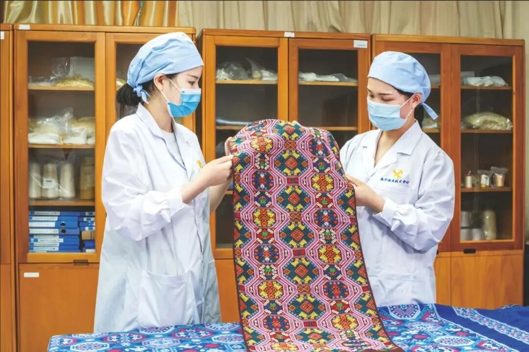 “针对壮锦产品的定义和技术要求等标准制定难点,我们广泛调研并系统梳理壮锦制作工艺,依托茧丝绸及消费品检测领域的大数据技术成果,联合壮锦相关企业、非遗代表性传承人及科研院所,共同确定了以花纹特色、织造工艺、文化传承与民族特色为核心的标准化方向。”南宁海关技术中心国家生丝及丝制品检测重点实验室正高级工程师盖国平介绍。通过数字化扫描与三维建模,传统纹样得以精准保存;借助计算机测色系统,建立了精准的色彩管理体系;运用区块链溯源等先进技术,传统工艺特色被转化为可量化、可验证的科学指标。