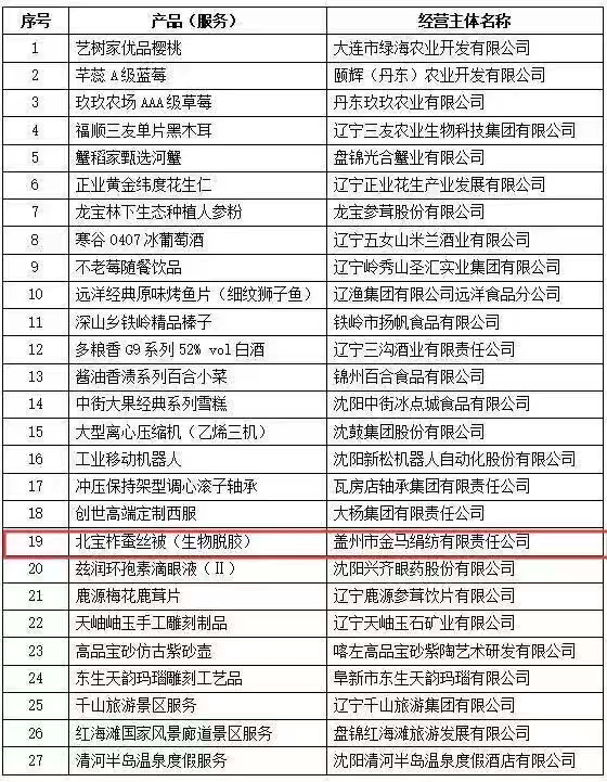 今年10月,2025年“辽宁优品”评价结果公布,全省27个产品(服务)获评“辽宁优品”,盖州市金马绢纺有限责任公司的“北宝牌柞蚕丝被”成功入选。