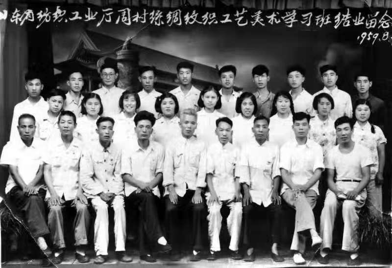 1959年8月26日,山东省纺织工业厅周村丝绸纹织工艺美术学习班结业留念