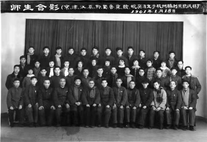 1961年1月18日,赴南方实习结束时师生在杭州胜利丝织试样厂合影
