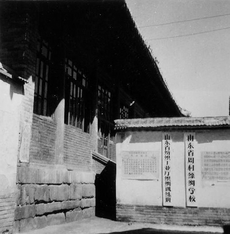 1960年6月,山东周村丝绸学校初建时,在山东省织绸训练班教室前挂牌