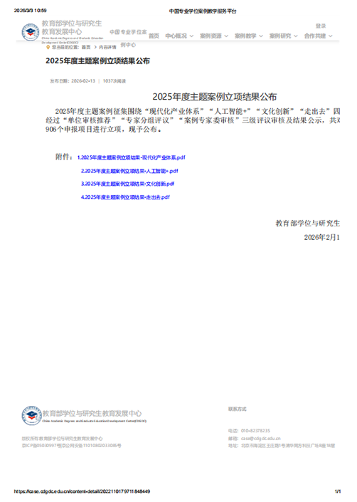 据悉,教育部学位中心统筹开展2025年度主题案例征集工作,紧扣时代发展脉搏与国家重大战略需求,核心旨在充分发挥高质量案例在高层次应用型人才培养中的“活页教材”作用。本次征集重点倡导立足中国特色社会主义伟大实践,提炼兼具时代性与原创性的学术观点,持续丰富中国自主知识体系建构的优质素材库,为加快建设教育强国与人才强国筑牢资源根基。经过“单位审核推荐”“专家分组评议”“案例专家委审核”三级严格遴选及公示,全国最终有340家单位的906个优秀项目脱颖而出,成功获批立项。