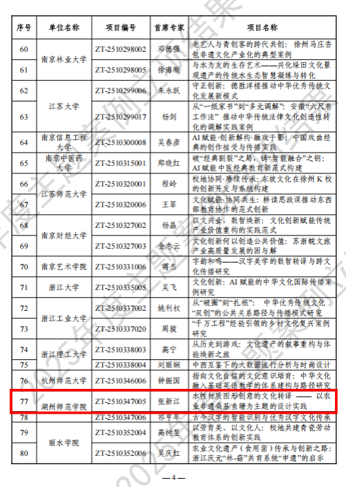 近日,教育部学位与研究生教育发展中心(以下简称“教育部学位中心”)公示2025年度主题案例立项结果,由湖州师范学院蚕丝绸文化基地副主任张新江教授主持的主题案例《水性材质图形创意的文化转译——以农业非遗桑基鱼塘为主题的设计实践》,成功获得“文化创新”主题方向立项。