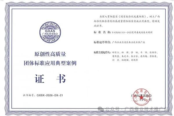 《菜用桑栽培技术规程》荣获广西标准化协会原创性高质量团体标准应用典型案例