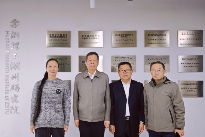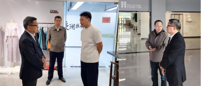 4月1日,浙江理工大学丝绸博物馆馆长葛建纲,经济管理学院校友会副会长、教授姚春序一行,到湖州长三角·南浔丝绸文化产业园调研考察。浙江理工大学湖州研究院院长姚琛教授,研究院常务专家、湖州绫绢研究所所长杨健全程陪同调研考察。